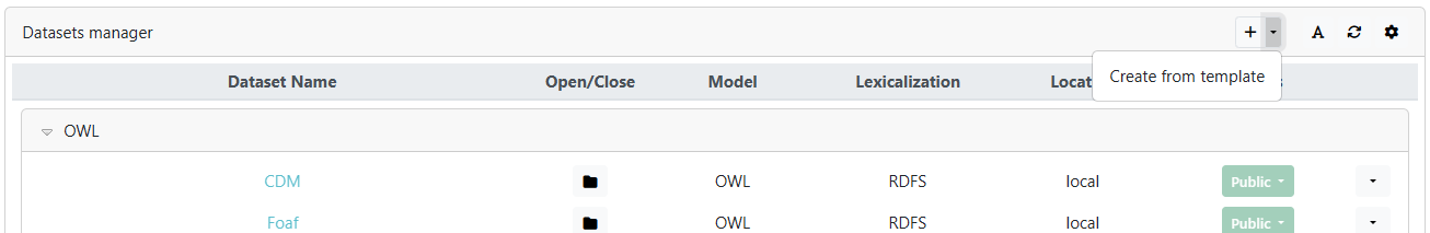 From the Datasets manager panel, administrator user is able to create datasets and to manage them.